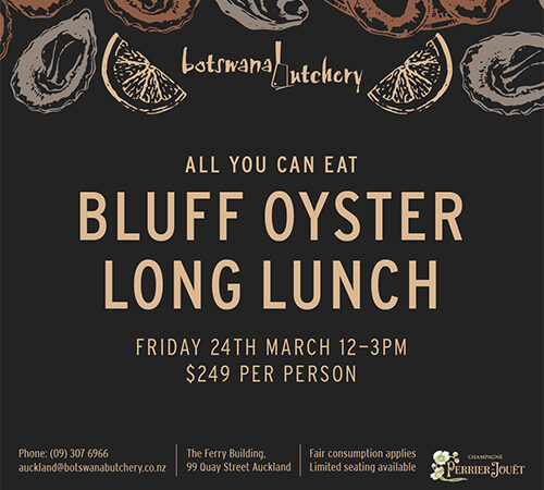 Join us for the Bluff Oyster Long Lunch on 24th March from 12-3 pm.